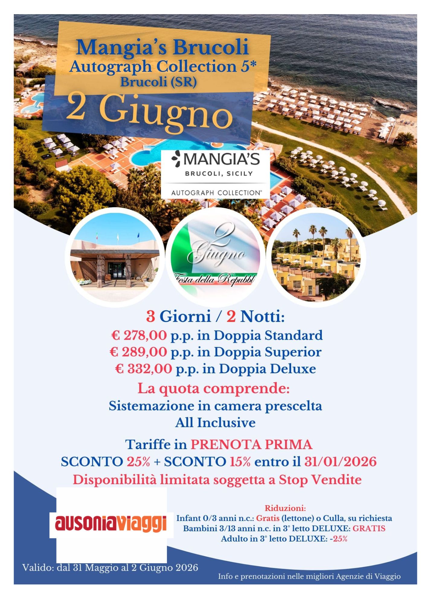 Ponte del 2 Giugno 26 al Mangia's Brucoli Village