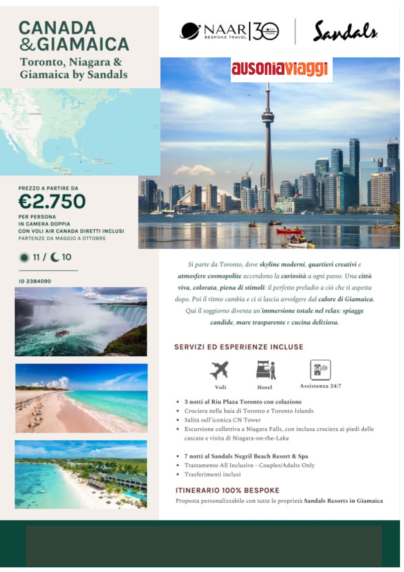 Puoi iniziare da Toronto, una città dinamica con grattacieli, quartieri multiculturali e attrazioni come la CN Tower. Da qui è facile visitare le famose Cascate del Niagara, uno spettacolo naturale impressionante.