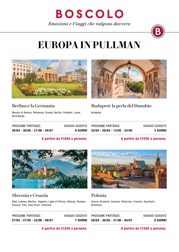 Alcune proposte di Tour in bus organizzati con Boscolo per tutta l'Europa