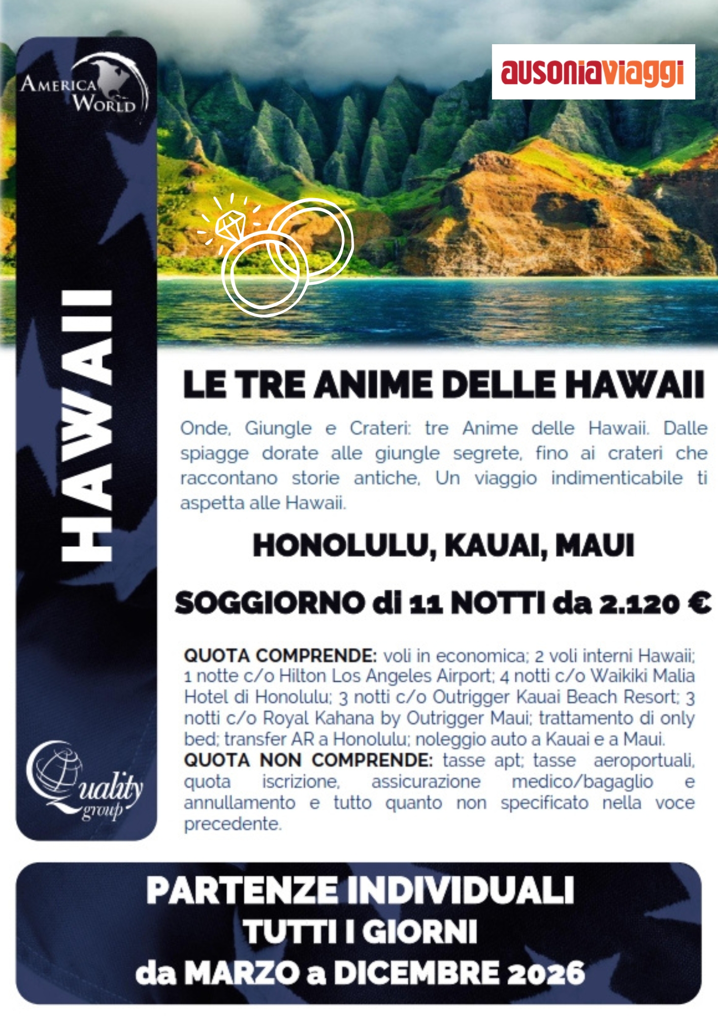 L’isola di Oahu è spesso il punto di partenza del viaggio. Qui si trova Honolulu, capitale vivace e moderna, famosa per la spiaggia di Waikiki, perfetta per rilassarsi o provare il surf.