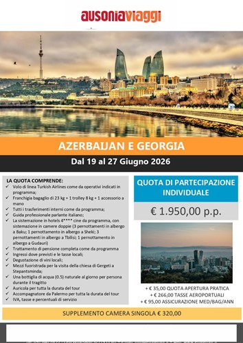 Azerbaijan e Georgia sono un viaggio fuori dalle rotte più scontate, dove Europa e Asia si incontrano in modo sorprendente. Dai contrasti di Baku, tra architettura futuristica e tradizioni antiche, alle montagne del Caucaso che sembrano senza tempo, ogni tappa regala emozioni autentiche. In Georgia, tra chiese arroccate, vini millenari e tavole imbandite, l’ospitalità è parte del viaggio. È un’esperienza fatta di paesaggi potenti, storia profonda e culture diverse che convivono in perfetto equilibrio.