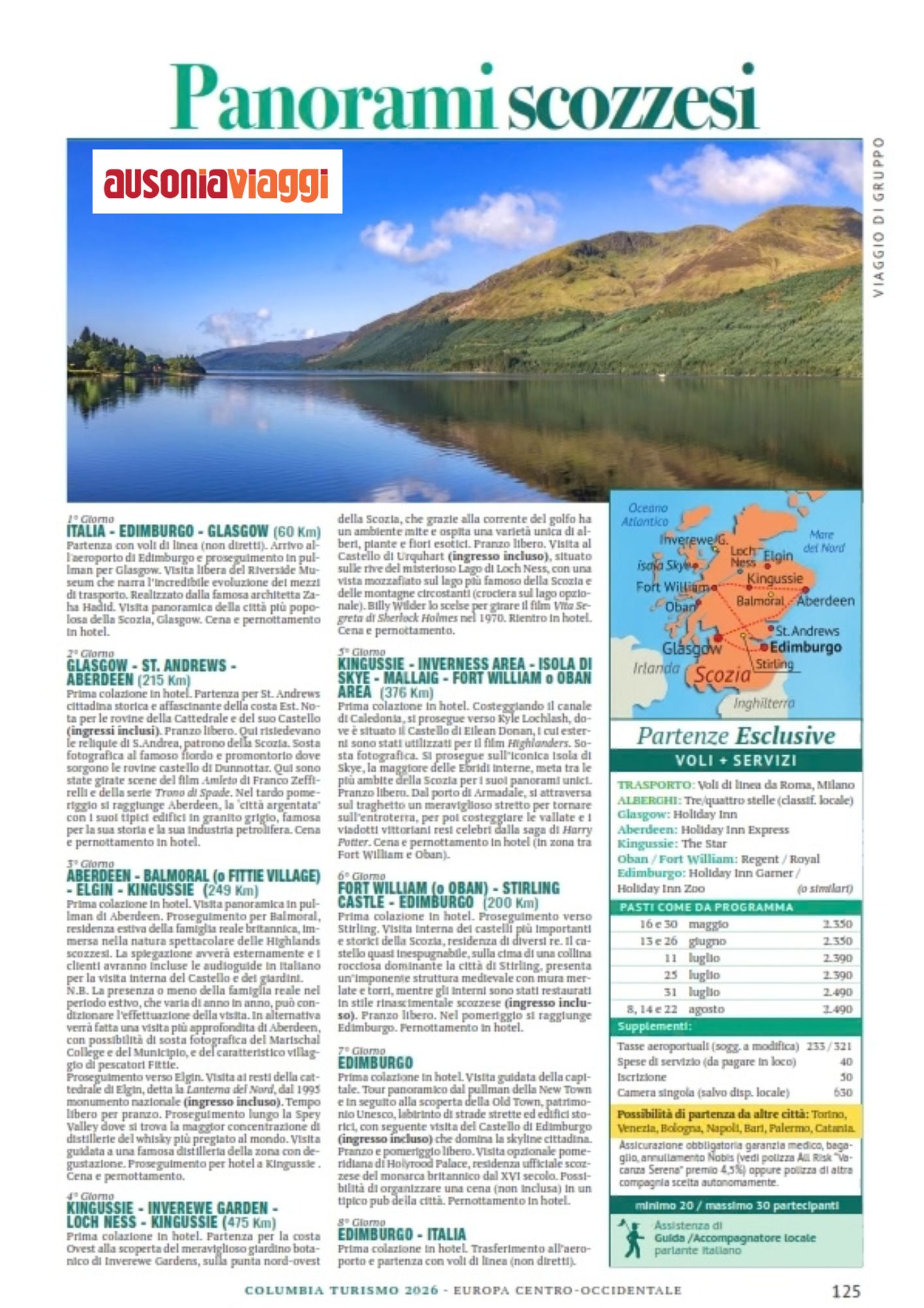 Un tour in Scozia è un viaggio tra paesaggi spettacolari, castelli maestosi e città ricche di storia. Situata nella parte settentrionale della Regno Unito, la Scozia offre montagne, laghi e coste che raccontano leggende e tradizioni secolari.