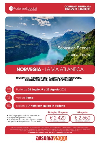 Tour di gruppo con partenza da Roma 26 Luglio - 9 e 23 Agosto 2026