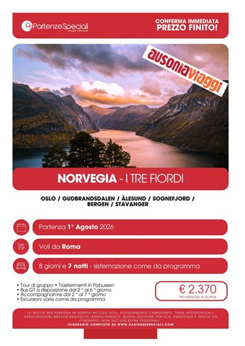Tour di gruppo con partenza da Roma dall'1 all'8 Agosto 2026