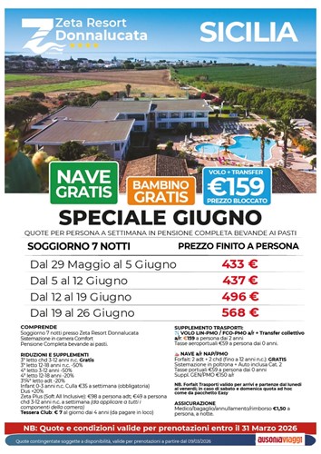 Promo partenza a Giugno allo Zeta Resort Donnalucata
