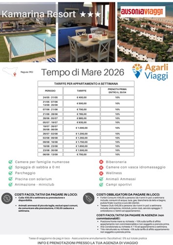 8 giorni/7 notti con sistemazione in appartamento