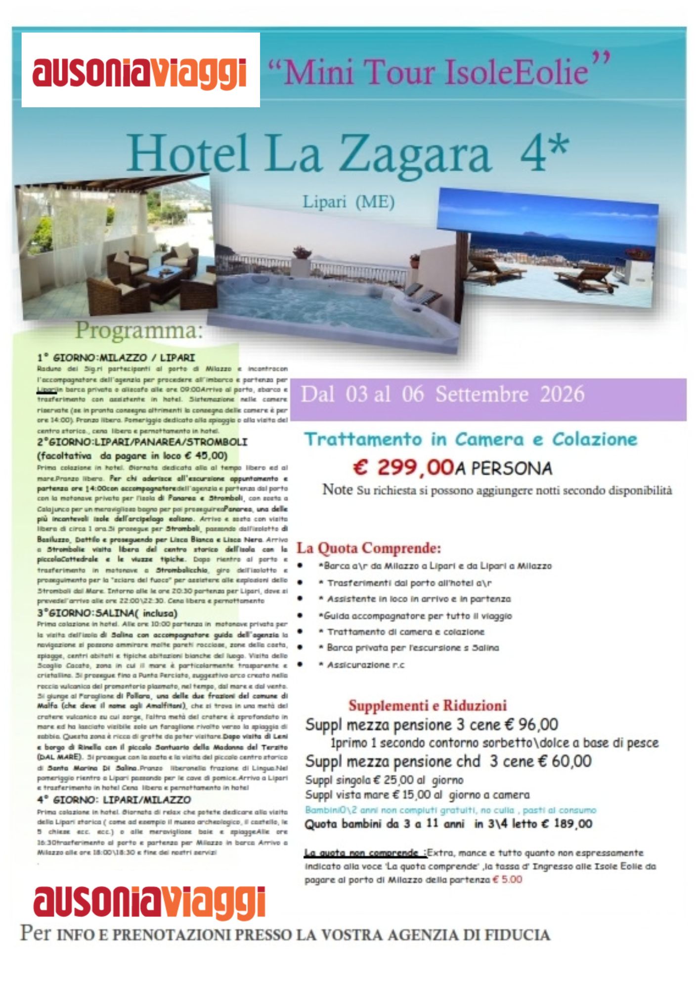 Mini Tour delle Eolie dal 3 al 6 Settembre 2026