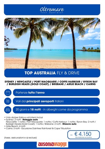 Un viaggio fly and drive in Australia è l’avventura perfetta per chi sogna spazi infiniti, natura selvaggia e massima libertà. Dopo l’arrivo in una delle grandi città australiane, si ritira l’auto e si parte alla scoperta di panorami spettacolari, percorrendo strade leggendarie che attraversano coste, deserti e foreste tropicali.