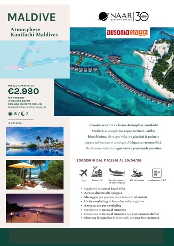 PROMO MALDIVE PER PRENOTAZIONE ENTRO IL 15 APRILE 2026