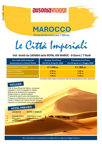 Un viaggio affascinante nel cuore del Marocco, alla scoperta delle sue leggendarie città imperiali, dove storia, cultura e tradizioni millenarie si intrecciano in un’atmosfera unica e suggestiva.