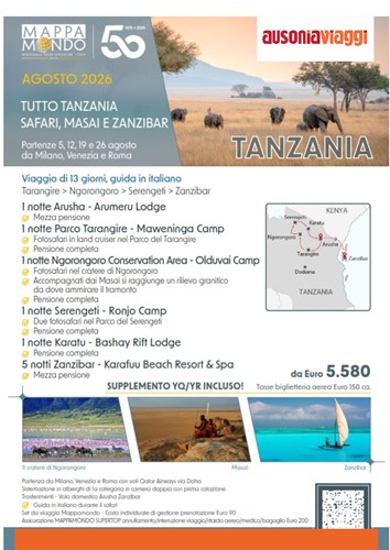 Un viaggio in Tanzania è un’esperienza intensa e completa, dove la natura si esprime nella sua forma più spettacolare: grandi safari, paesaggi iconici e spiagge tropicali sull’Oceano Indiano.