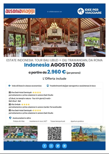 Le Gili Islands (Gili Trawangan, Gili Air e Gili Meno) si trovano vicino a Lombok e sono famose per acque turchesi e atmosfera rilassata.
