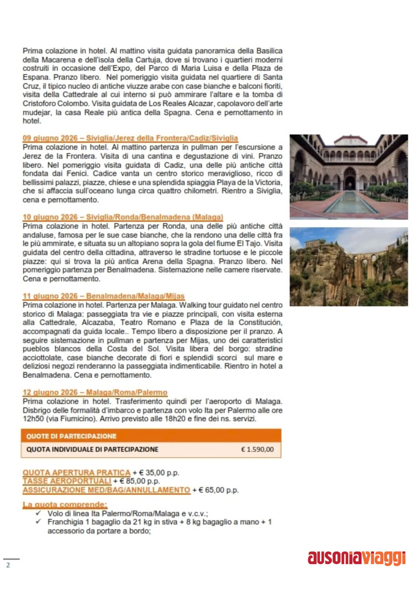 Tour Andalusia dal 5 al 12 Giugno 2026