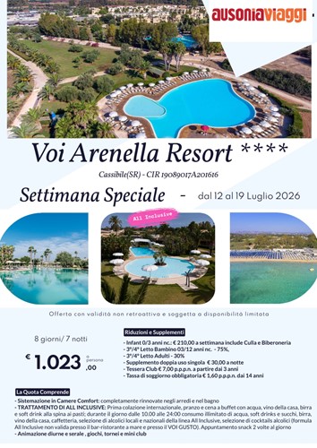 Voi Arenella Resort dal 12 al 19 Luglio 2026