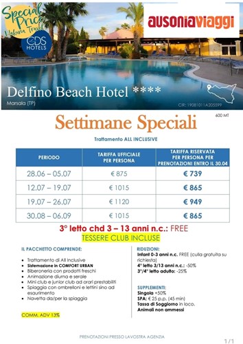 Delfino Beach PROMO SETTIMANE SPECIALI