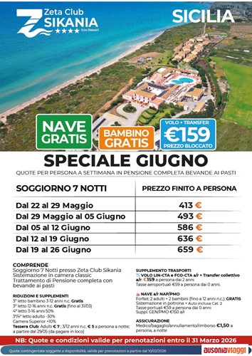 Promo partenza a Giugno allo Zeta Club Sikania Resort
