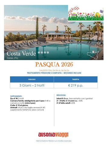 Ponte di Paqua al Costa Verde di Cefalù in pensione completa
