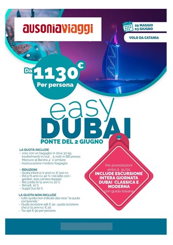 Il pacchetto include: il viaggio aereo da/a Catania dal 29 Maggio al 3 Giugno 2026