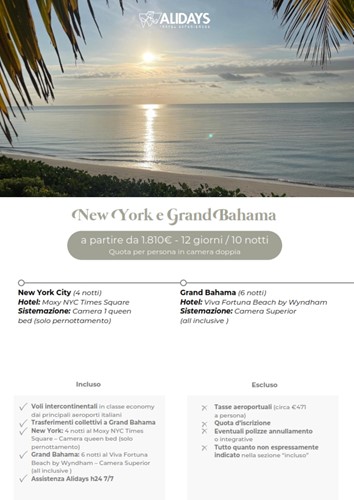 Un viaggio tra New York e Grand Bahama è un mix affascinante di metropoli vibrante e paradiso tropicale: perfetto per chi vuole vivere emozioni intense e poi rilassarsi al sole.